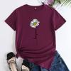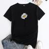 Summer Round Neck Daisy Pattern Printed Top Fashionable Casual Short Sleeved Women's Pure Cotton T-shirts