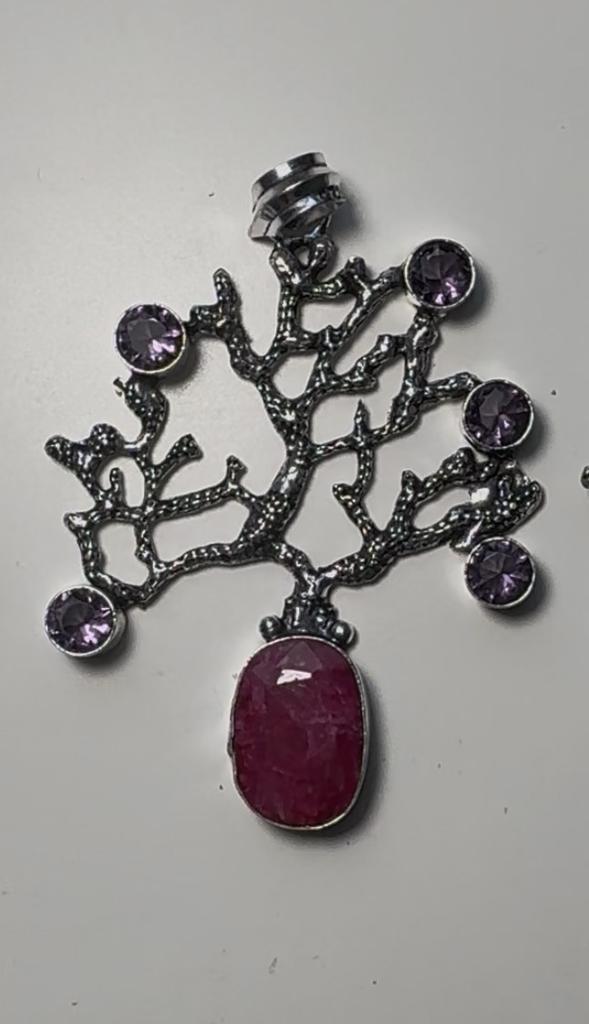Natural Ruby(Simulated), Amethyst 925 Sterling Silver Jewelry Pendant 2.72" E0R59