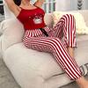2PCS/Set Homewear Printed Suspender Pants Comfortable Casual Sexy Women Striped Bear Pajamas Elastic Waist Loungewear