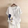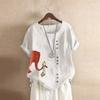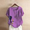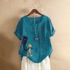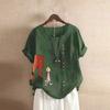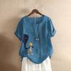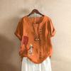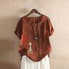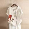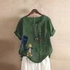 GMXIA Summer Vintage Plus-size Casual Loose Cotton and Linen Short Sleeve Pullover T-shirt Cotton and Linen Women Plus-size Women's Wear