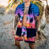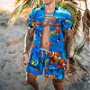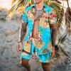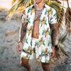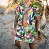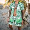 Adding a tropical touch, this man's Hawaiian shirt set features a vibrant floral plant print and an elastic waist drawstring for easy and comfortable wear.