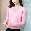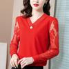 Women's Tops Large Size Ladies V Neck Beaded Shirt Lace Crochet Splicing Mesh Long Sleeve