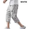 Summer Mens Casual Cargo Short Pants 3/4 Loose Fit Below Knee Capri Cargo Trousers Cotton