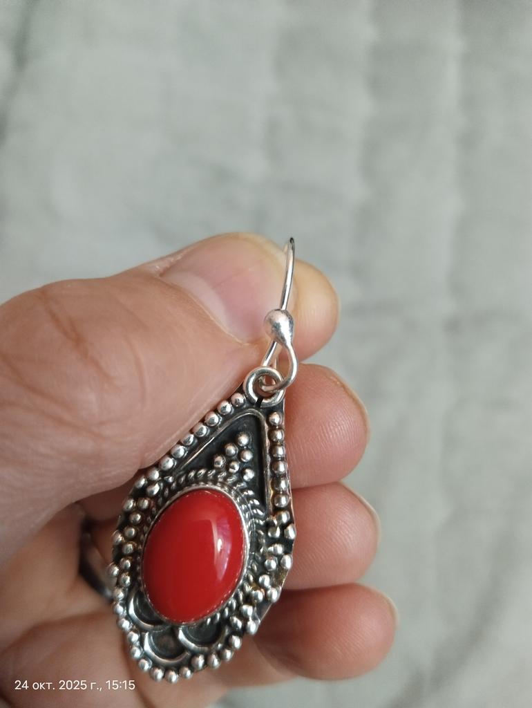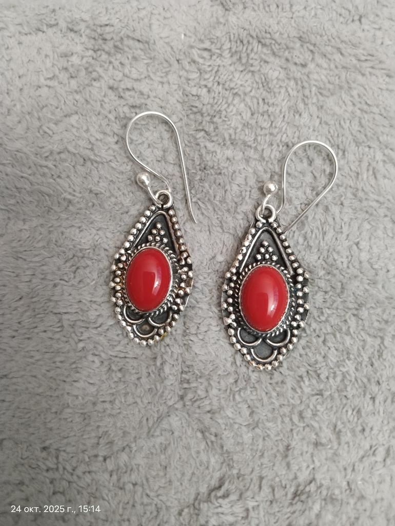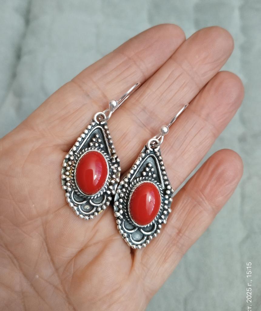 Natural Red Coral Gemstone Earrings, 925 Sterling Silver Earring, Handmade Boho Silver Jewelry Dangle Earrings, Wadding Gifts