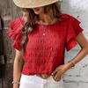 Summer New Round Neck Ruffle Sleeve Casual Shirts Top for Women Fashion Elegant Vintage Pleated Women Loose Blouses Vacation Slim Female Shirt 26487