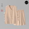 Men's Cotton & Linen Tang Suit: Vest & Shorts Set - Chinese Style Summer Outfit for Middle-aged & Elderly.