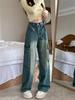 Women's 2024 Spring & Autumn Retro Wide-Leg Jeans - Trendy High Street Vibe Straight-Leg Pants