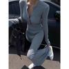 2024 Autumn/Winter Women's Korean Slim-Fit V-Neck Long Sleeve Hip-Wrap Dress