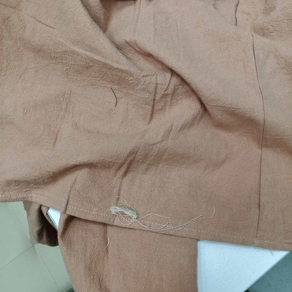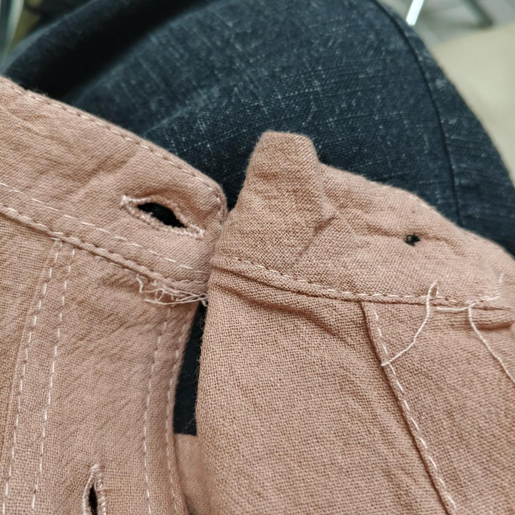 Good fabric, neat stitching, but the narrowed armholes with the dropped shoulder look a bit strange...