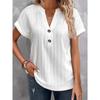 IHUASU Spring Summer Women's Fashion Casual Solid Color Button V-neck T-shirt Women