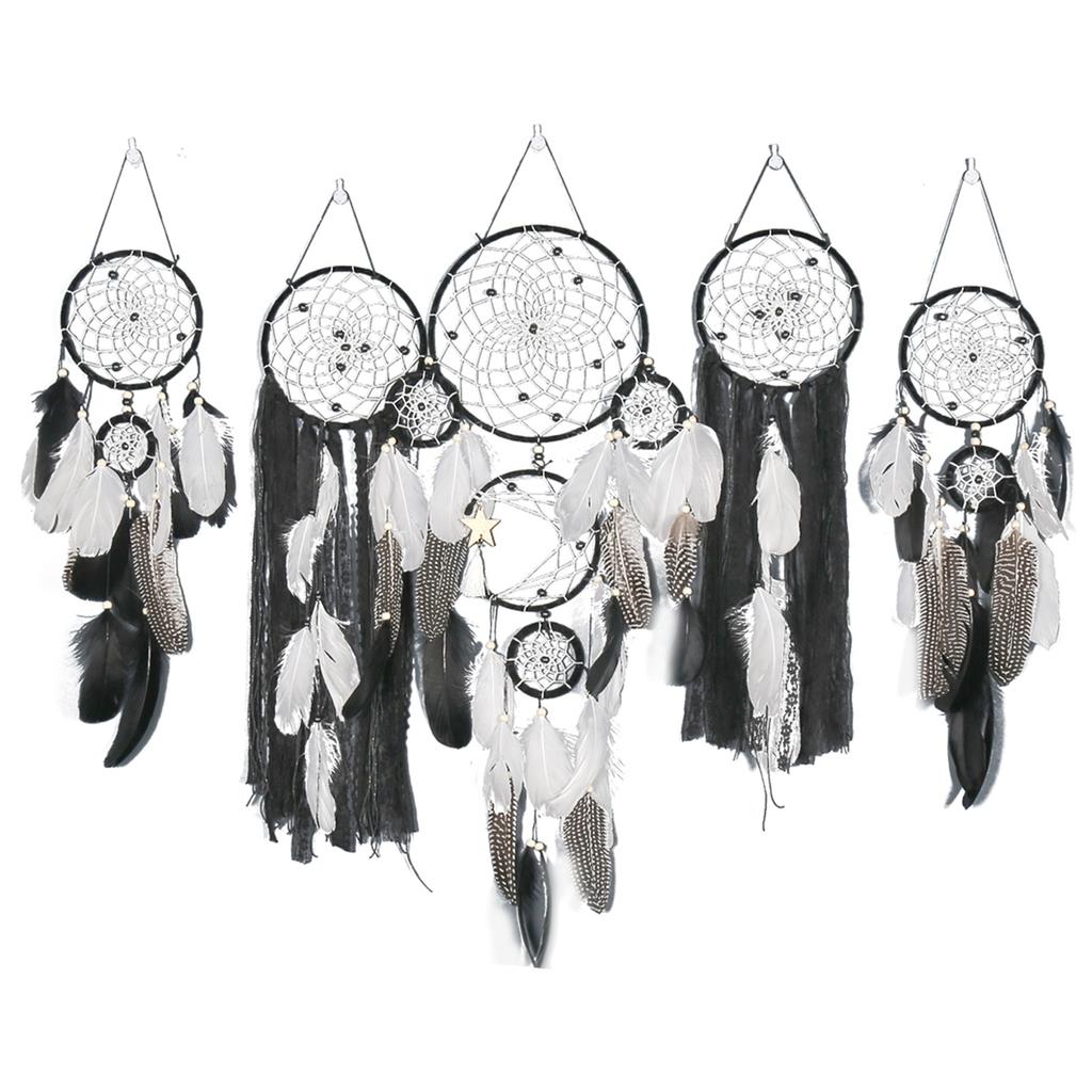 1. 1. Design: This dreamcatcher set includes 5 dream catchers combined into a complete set. Combined with natural feathers, wood, chains, thread, No matter where you choose it to hang, be sure that it will be the center of attention.