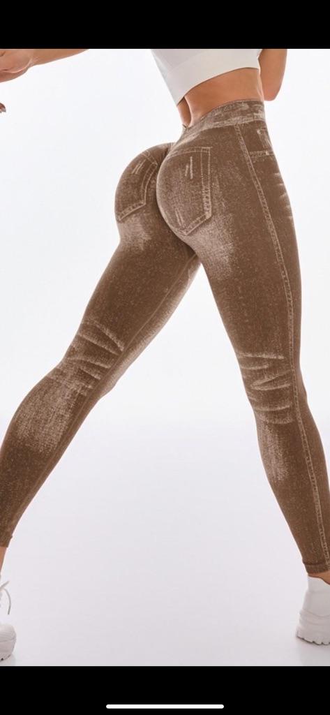 Women Sport Yoga Leggings Faux Jeans Skinny Tight Seamless Fitness Outerdoor Pants