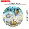 2D Flat 20*20cm1pc Welcome Seaside Vacation Travel Scene Blue wreath&Recliner Patterns Front Door Sign, Summer Door&Pediment&Holiday Hotel&Beach