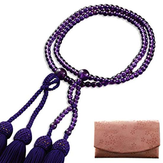 Kyoto Buddhist Altar Hayashi Prayer Beads Jodo Shinshu Eight Size Amethyst Official Ceremony Bag Kyoto Prayer Beads (For Women) [Bead Set] SW-071