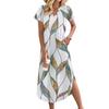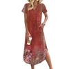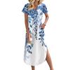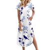 Women's Long Skirt Casual V-neck Long Shirt Dress Loose Slit Holiday Short Sleeve Dress