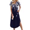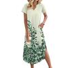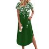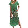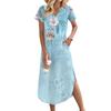 Women's Long Skirt Casual V-neck Long Shirt Dress Loose Slit Holiday Short Sleeve Dress
