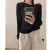 Summer Lady Sexy Hollow Out Mesh Pullover Beach T-shirt Women's Knitted Sweaters See Through Casual Oversized Long Sleeve Tops