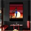 Vintage Abstract African Woman Life Posters and Prints Sunrise Glow Canvas Painting Wall Art Picture for Living Room Home Decor No Frame