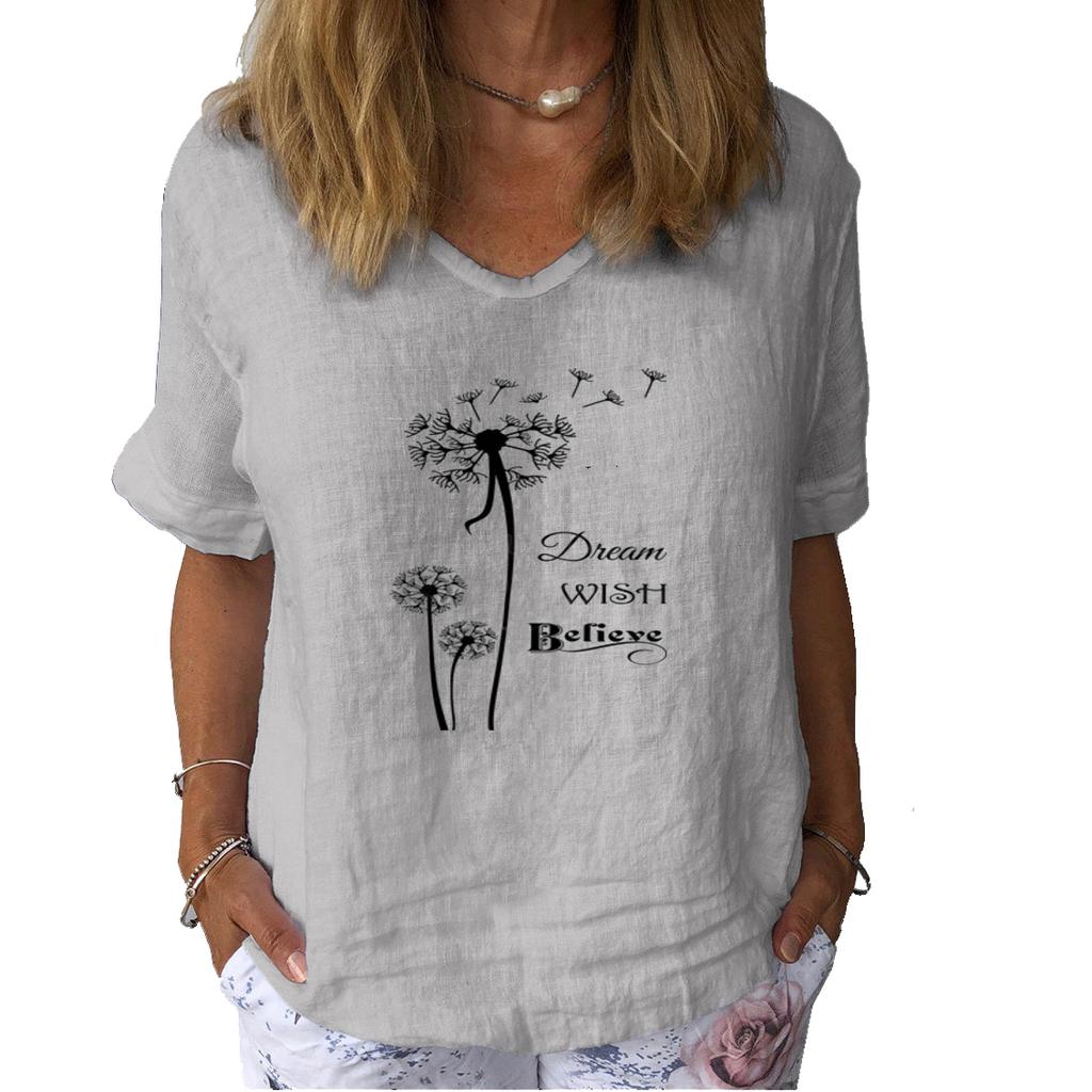 Women Fashion Cat Print Linen Shirt Summer Casual Round Neck Short Sleeve Top Print Pullover Loose Blouse