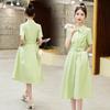 Embrace elegance and comfort with this slim long dress, perfect for warm weather. Crafted from a blend of cotton and polyester, it offers a lightweight and breathable fit. The design features a draped waist that flatters your silhouette, making it an ideal choice for both casual outings and special occasions.