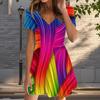Summer Fashion Women's V Neck Short Sleeve Colorful Personality Printed Dress Sex Short Skirt Dresses