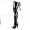 Spring Black Pointed Head Banquet Round Head Adhesive Bottom One Size Solid Color High Top Stiletto Fashion Boots 12cm