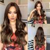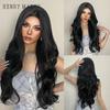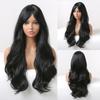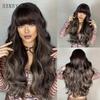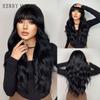 HENRY MARGU Long Wavy Synthetic Wigs With Bangs Natural Black Hair Wigs for Women Daily Party Heat Resistant Fiber Wigs