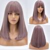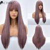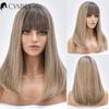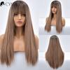 Blonde Ombre Long Straight Gold Synthetic Wig With Bangs For Black White Women Heat Resistant Fiber Daily Hair Cosplay Wigs