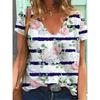 Summer New Fashion Women's T-shirt Casual Short-sleeved Harajuku 3D Printed Trendy Top V-neck Street Loose Large Size Clothes