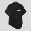 INCERUN Summer Men Layers Short Sleeve Patchwork Buttons Down Oversized Irregular Shirts Tops