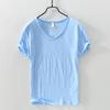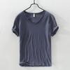 Men's Summer Solid Color Short Sleeved V-neck T-shirt Youth Casual Thin Pullover Top