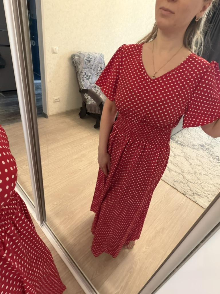 TEMU Polka Dot Print Waist Elegant Short-sleeved V-neck A-line Skirt Spring And Summer Women's Clothing