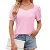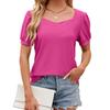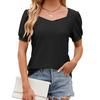 Solid Color T-Shirt Square Neck Bubble Sleeve Short Sleeve Loose T-Shirt Top for Women