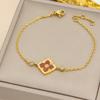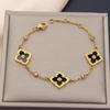 Four Leaf Clover Bracelet Women Vintage Natural White Mother-Of-Pearl Triple Flower Titanium Bracelet