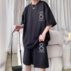Summer Large Men's Sports Suit High Street T-shirt Shorts Two-piece Set Men Retro Neck Top Two-piece Set
