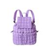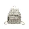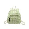 Women's Fluffy Plaid Down Backpack - Stylish, Lightweight, Large Capacity for Fall/Winter Commuting and Travel.