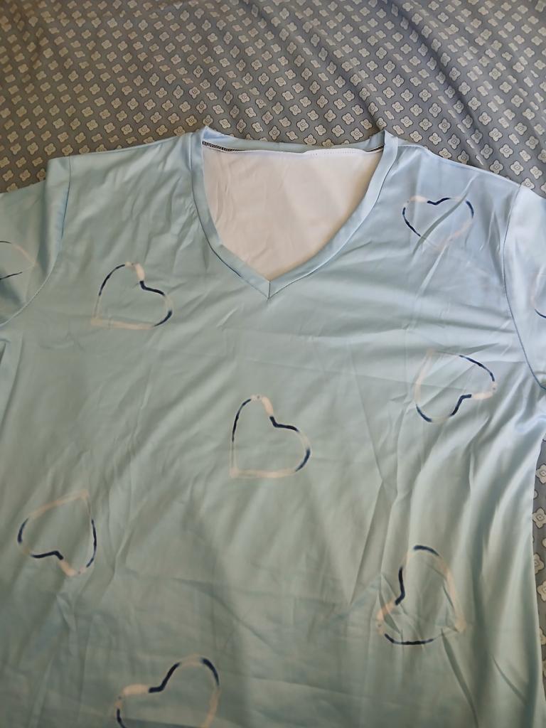 In the photo on Joom it looks very cute due to the pattern, it seems as if it is made of silver and with a shine, in reality it is an ugly painted pattern, it looks cheap and not beautiful. And the style is completely different. The sleeve is not raglan, the neckline is not like in the photo. I will be returning it. I ordered it in 2 colors, white and light blue. The photo does not correspond to reality