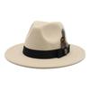 White Woolen Gentleman Classic British Jazz Feather Top Hat Wide Brim Party Church Wedding Fedora Hats Men Women Panama Felt Cap