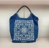 Eco-Friendly Japanese Nylon Handbag with Embroidered Floral Vine Design