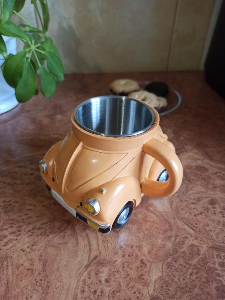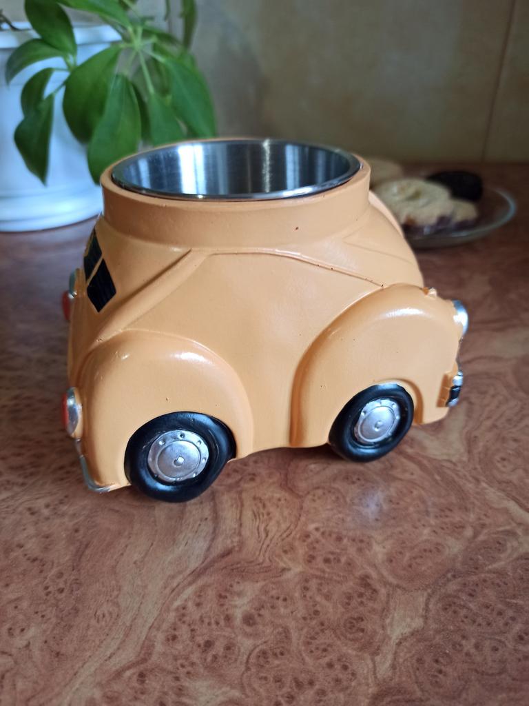 Mug in the shape of a car These mugs fit perfectly into the interior and look interesting. It's not very convenient to drink from it, but it's possible. I use it for treats, in the form of various dragees, nuts, dried fruits. Cool. And it would make a very good gift. I recommend 🤗