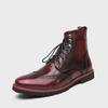 2020 Autumn/Winter Retro High-Top Leather Motorcycle Men's Boots, Casual Carved Design, Large Size