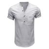 Discover the perfect blend of comfort and style with this short-sleeved shirt. Made from a cotton blend, this shirt offers a lightweight and breathable experience, ideal for warm weather. Featuring a stand neckline and a solid color design, it embodies a clean and minimalist look. Whether you're heading to a casual outing or a laid-back event, this shirt is a versatile addition to your wardrobe.