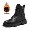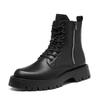 Men's British Style Chelsea Motorcycle Boots - Height-Enhancing, Plus Velvet Mid-High Top Leather Footwear