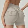 European and American High Waist Pocket Yoga Shorts - Women's Hip Lift Flared Fitness Pants
