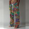 Vintage 3D Digital Printing Loose Trousers Men Drawstring Waist Casual Linen Pants Fashion Streetwear Long Pant for Male