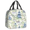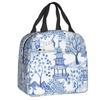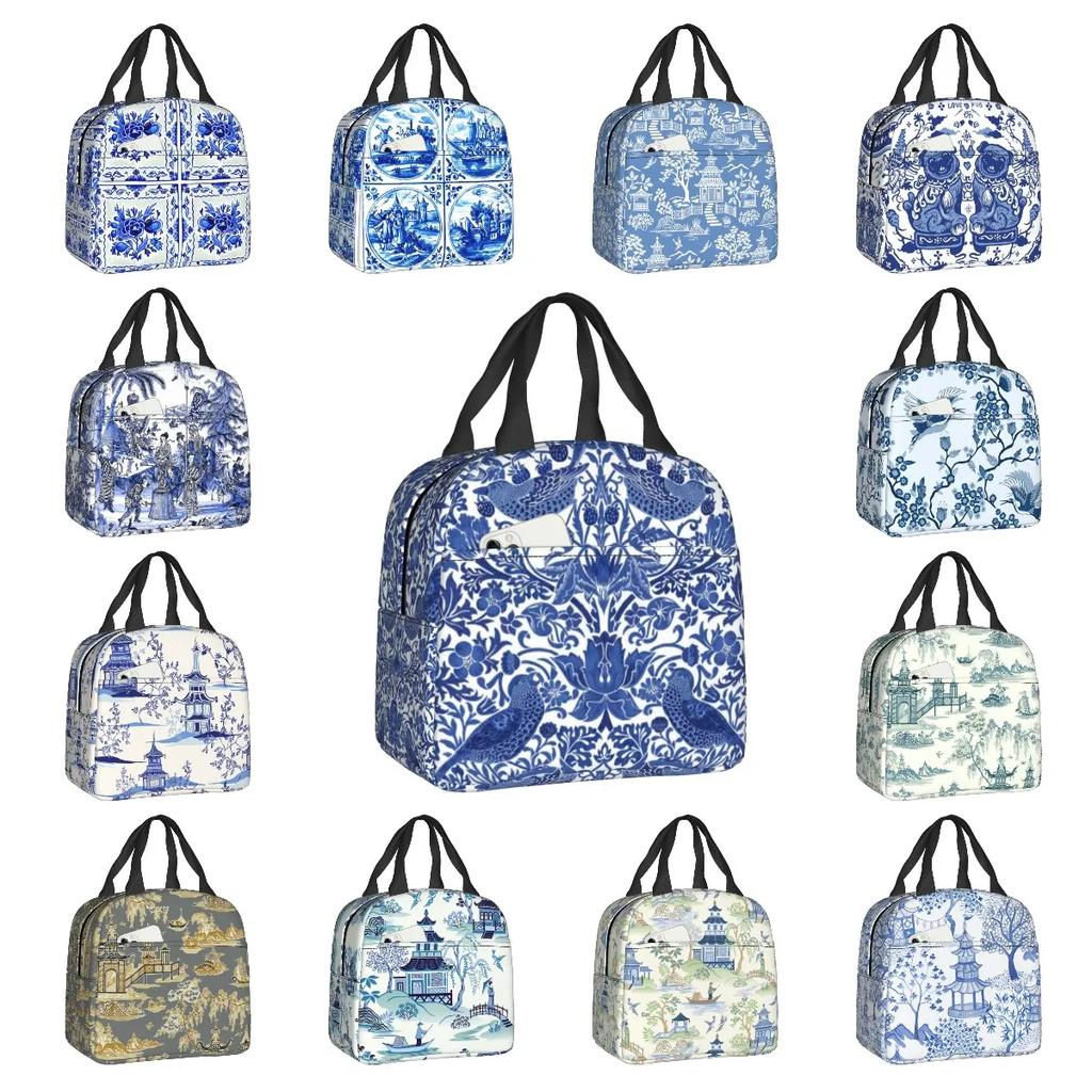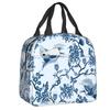 Porcelain Blue Oriental Bird Pattern Insulated Lunch Bag for Camping Travel Chinoiserie Thermal Cooler Lunch Box Women Kids
