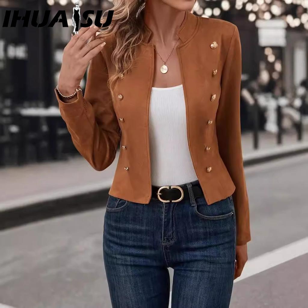 IHUASU Winter Solid Color Slim Everything Double Breasted Small Suit Jacket Woman Jackets & Coats