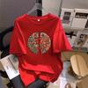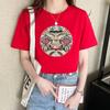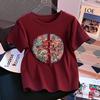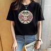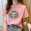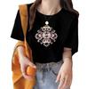 VEZFAA Women's Fashion Casual Summer Spring Flower Pattern Print Short Sleeve O-Neck Blouses & Shirts