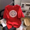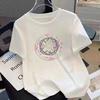 VEZFAA Women's Fashion Casual Summer Spring Flower Pattern Print Short Sleeve O-Neck Blouses & Shirts