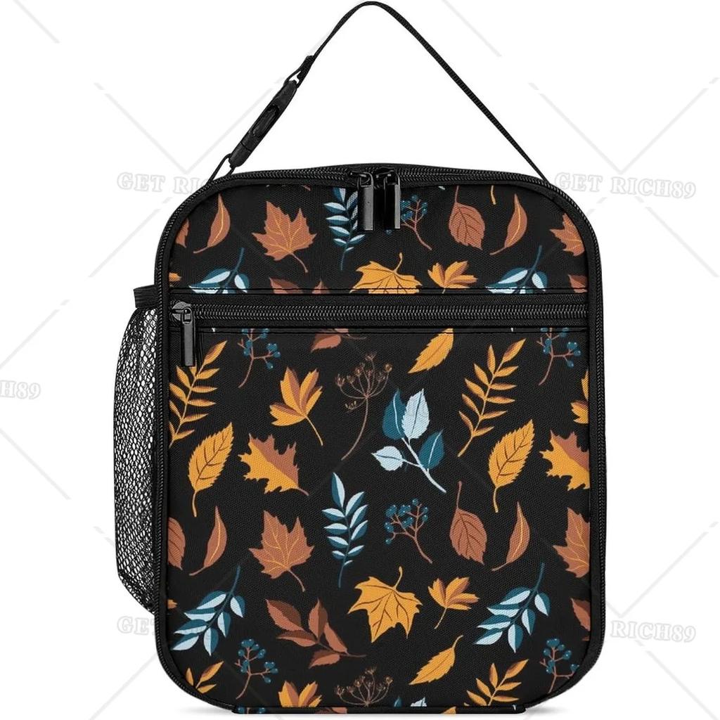 Orange-blue-leaves Print Rectangular Lunch Bag Insulated Portable Lunch Box Tote Bags for Adults Men Women Travel Picnic Office